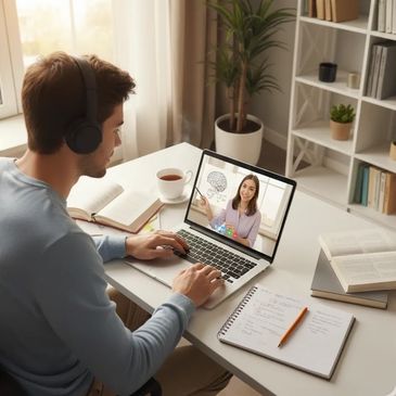 Di adiós al estrés del tráfico y a las prisas. Con nuestro servicio de clases virtuales particulares, transformamos tu hogar en tu aula de estudio más cómoda y eficiente. Podrás aprender a tu propio ritmo y en el horario que mejor se adapte a tu vida, todo sin moverte de tu sillón favorito. La flexibilidad es total: solo necesitas una co